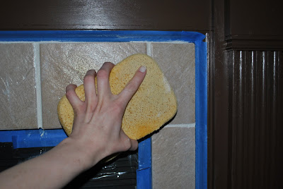 Once I filled all the holes and crevices, I used a damp sponge to smooth out the grout. This not only cleans the tile face but smooths out the grout joints.